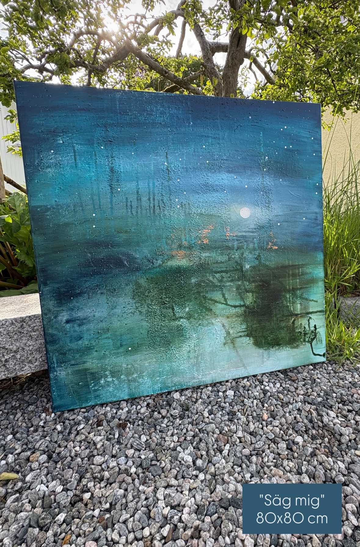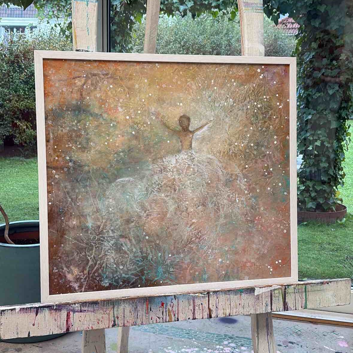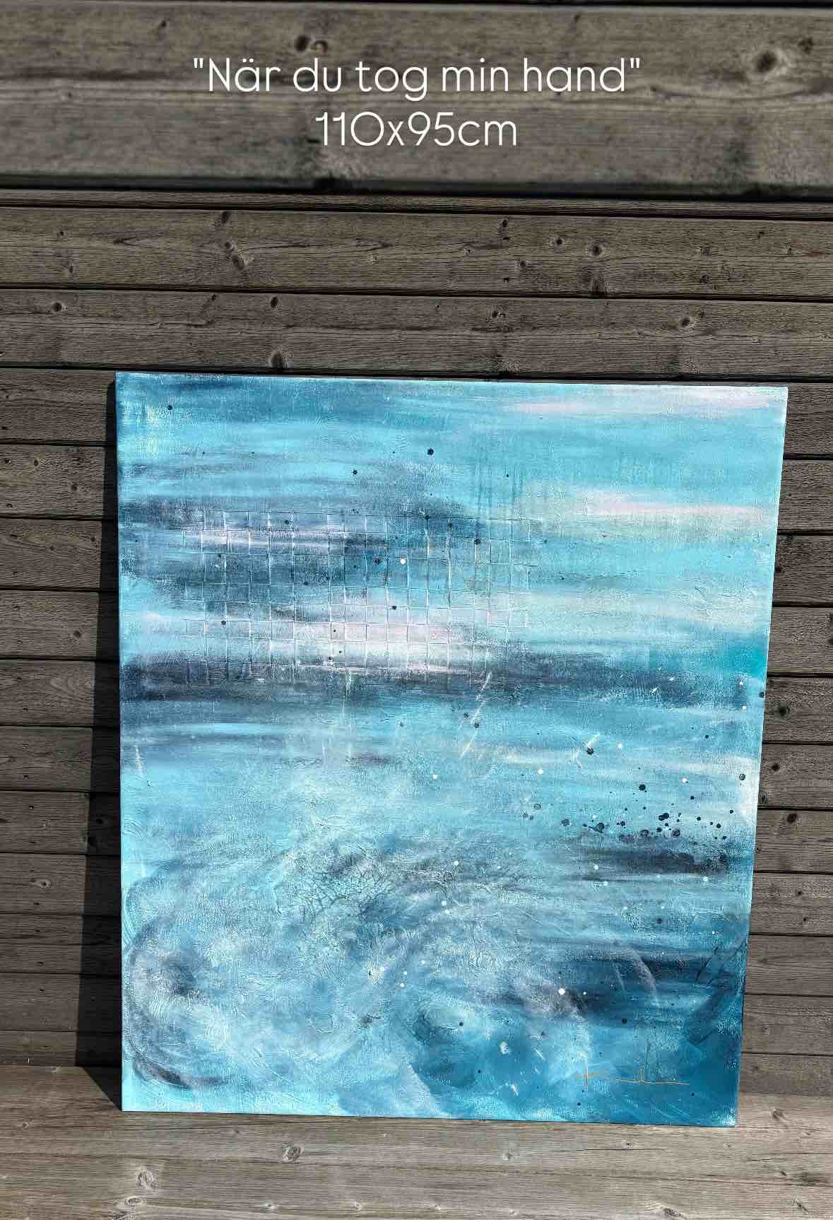 När målningen är klar och signerad kommer ofta titeln och därefter en text som förklarar vad just varje konstverk betyder för mig eller vill förmedla till omvärlden. Det är mitt sätt att djupdyka i mina tankar, tydliggöra och sätta ord på var som försiggår bakom kulisserna inne i mitt inre. Texterna är presenterade med varje originalmålning på Instagram och Facebook.
