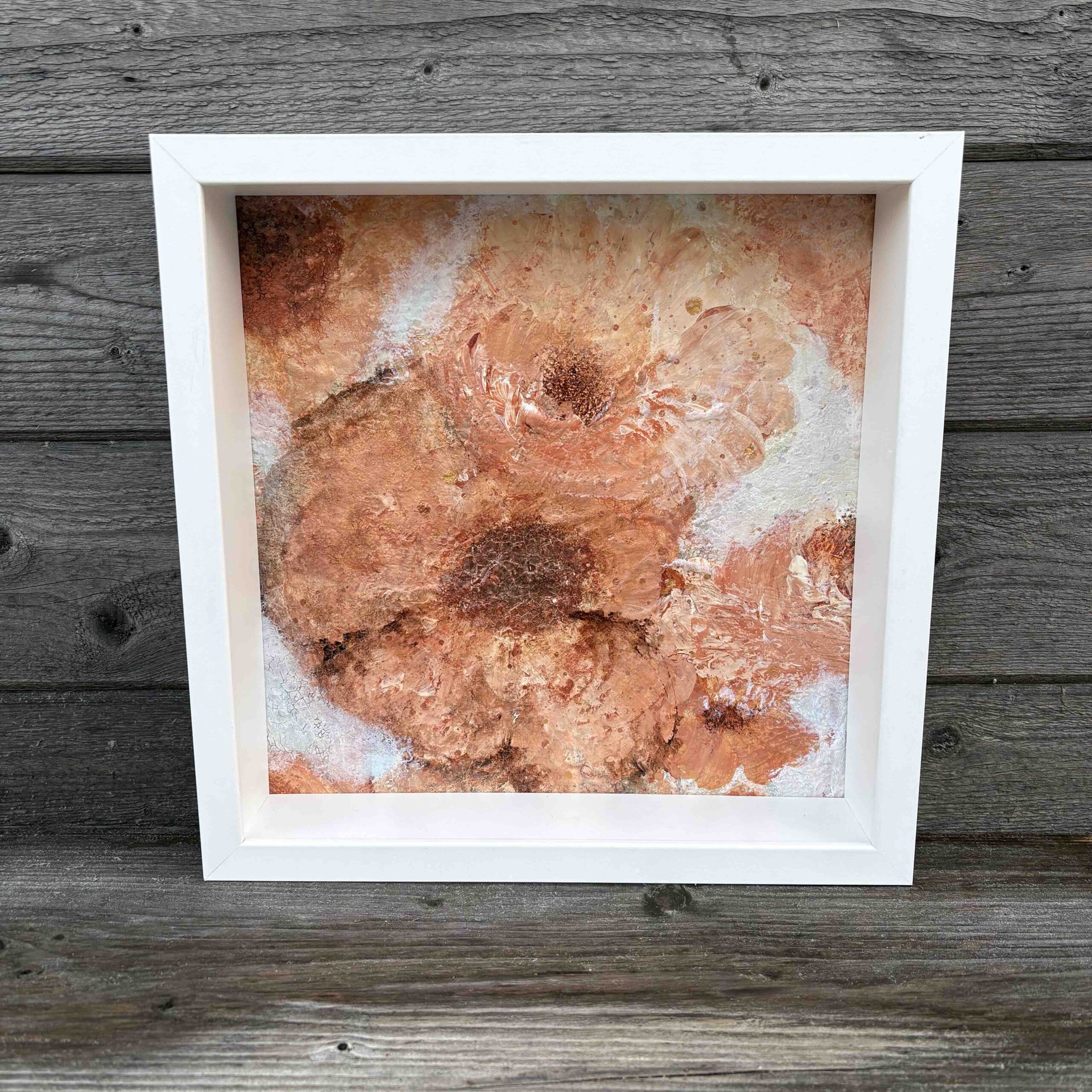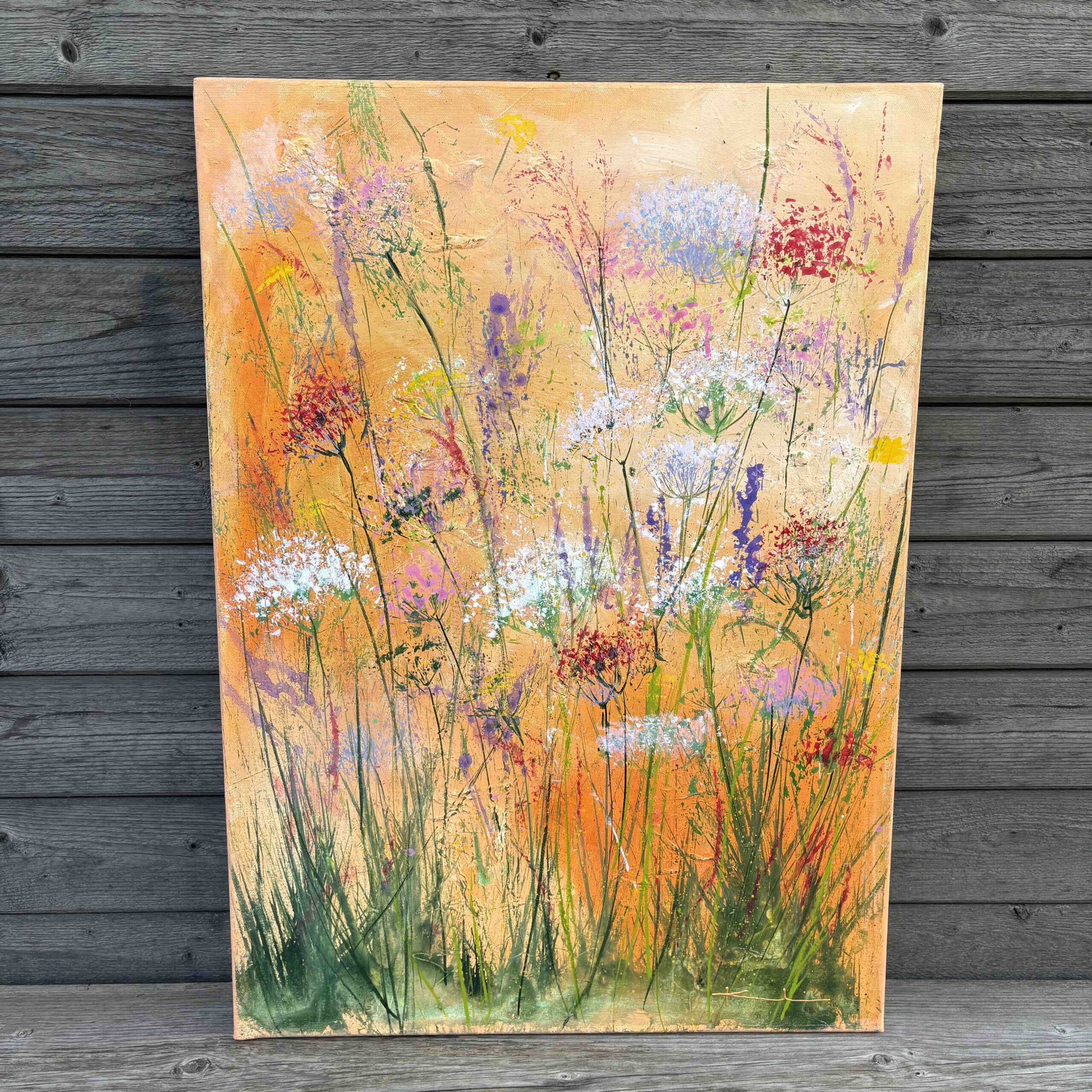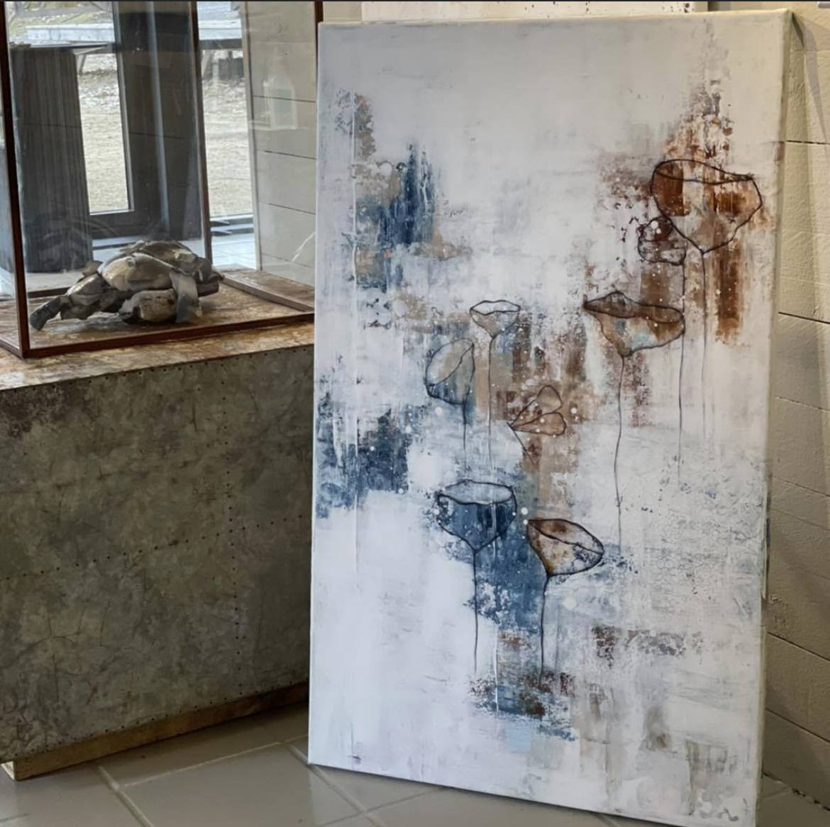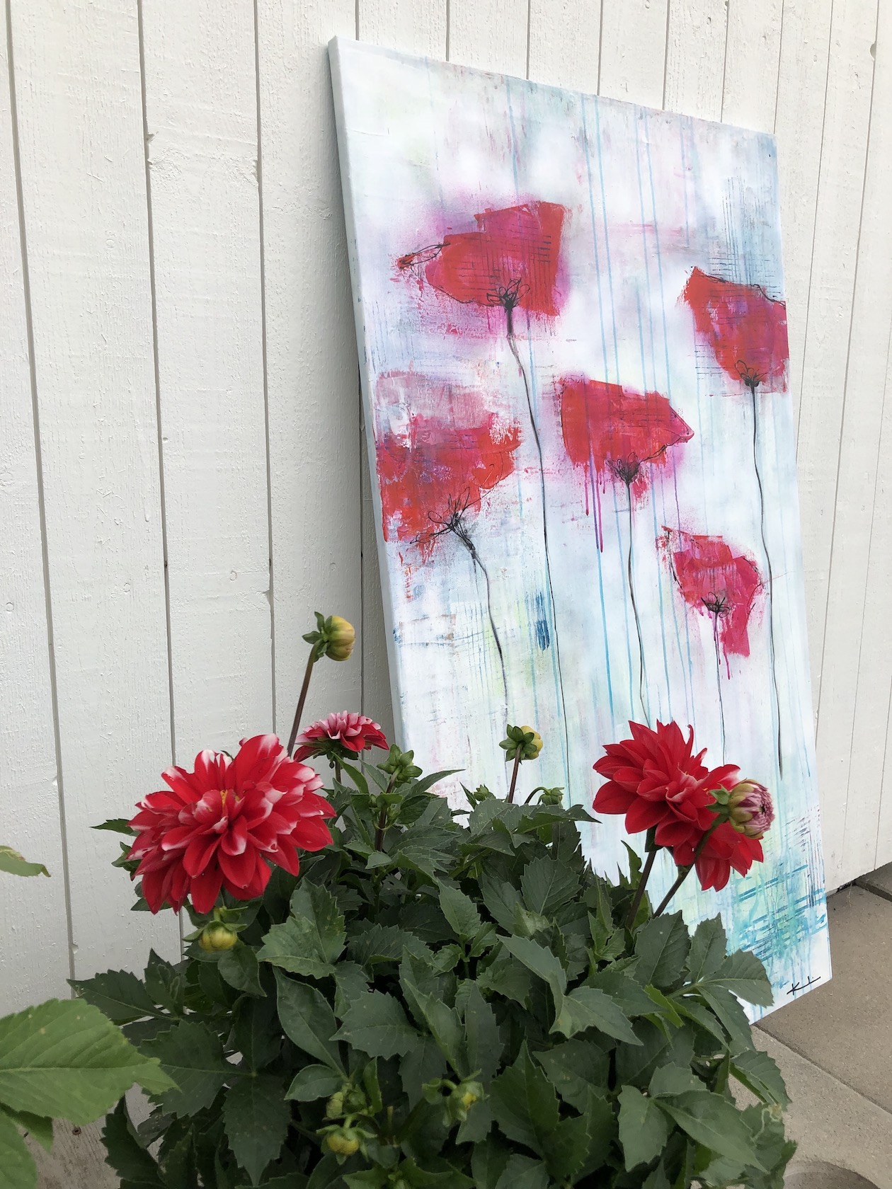 När målningen är klar och signerad kommer ofta titeln och därefter en text som förklarar vad just varje konstverk betyder för mig eller vill förmedla till omvärlden. Det är mitt sätt att djupdyka i mina tankar, tydliggöra och sätta ord på var som försiggår bakom kulisserna inne i mitt inre. Texterna är presenterade med varje originalmålning på Instagram och Facebook.