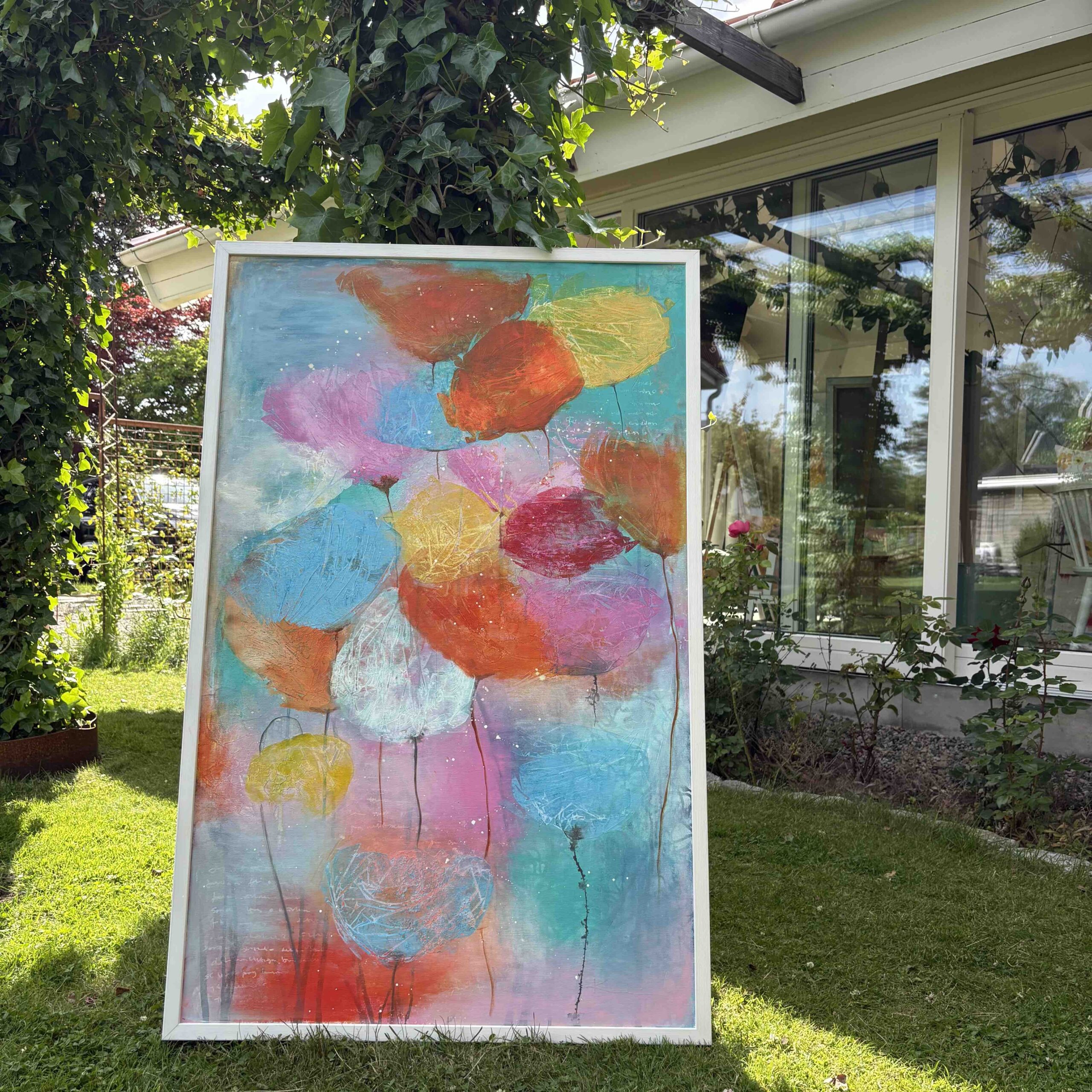 För mig handlar det om föreningen, länkningen, sammankopplingen. Det enda viktiga som betyder något är vem målningen är ämnad för. Att det blir rätt hela vägen, att hjärta och målning finner varandra, den där äkta sanna förbindelsen. För mig är den personliga kontakten essentiell så jag vill vara med och bestämma och känna in vem varje målning är ämnad för. Ett original är ett enda exemplar, det enda i sin sort, där min innersta själ och processens alla känslor tillsammans med färgerna skapat verket. Det är därför mina målningar inte finns representerade hos gallerier eller andra utställare, för jag vill vara med i den processen. Det händer att jag säger nej när jag känner att verk och person inte är menade för varandra. Även om jag tror att det redan är förutbestämt och att det sköter sig självt på ett högre plan. Prisklass från 2.500kr för de allra minsta 20x20cm upp till 45.000kr för de största 160x2oocm. Nedan finns de målningar som är tillgängliga just nu och gör ditt hjärta trippelvolt när du ser någon kanske just den är ämnad för dig. Då är det bara att skriva eller ringa till mig.