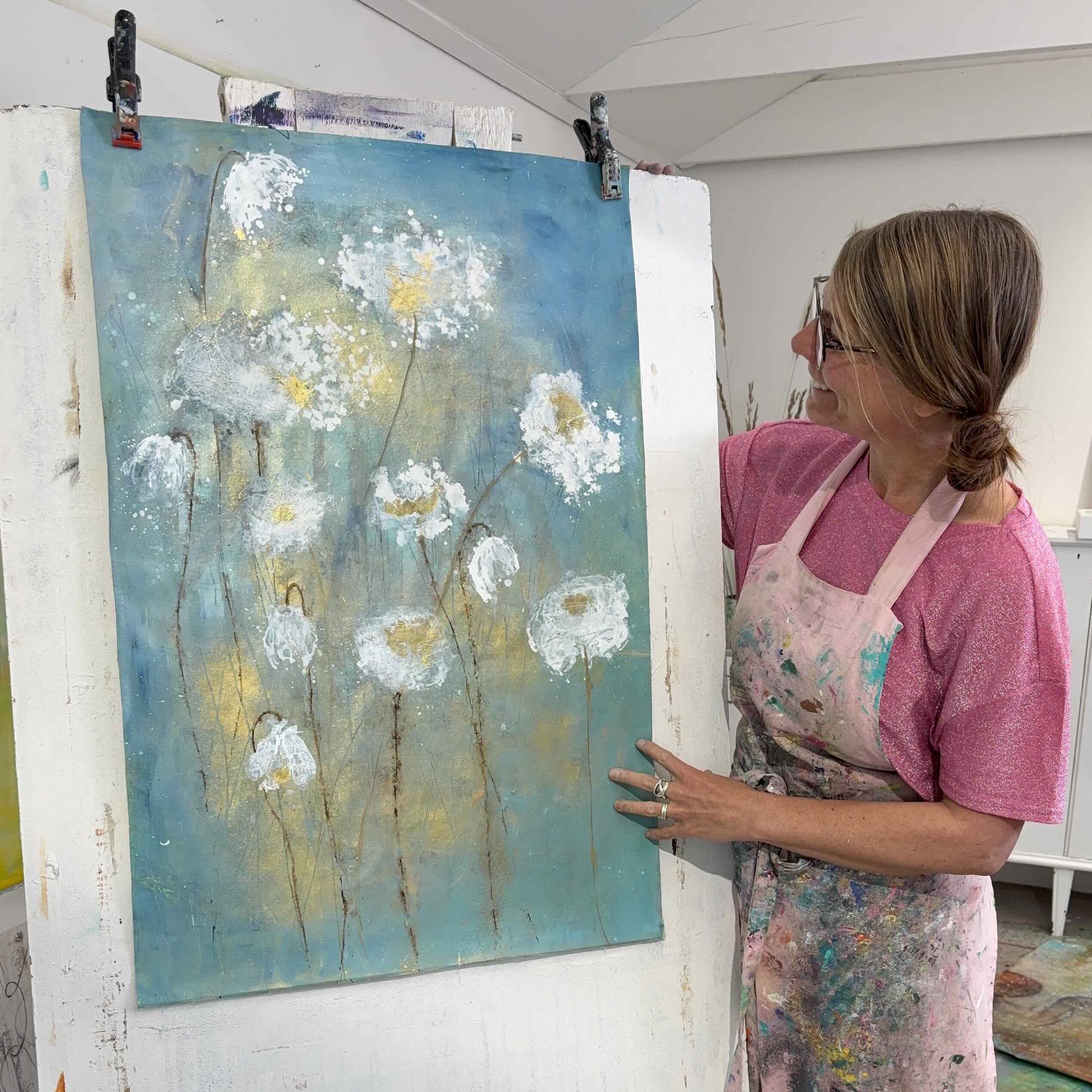 Målningen kan att spännas upp på kilram om det skulle önskas. Skicka ett mail eller ring mig om du är intresserad av ”Där dagen gryr”.