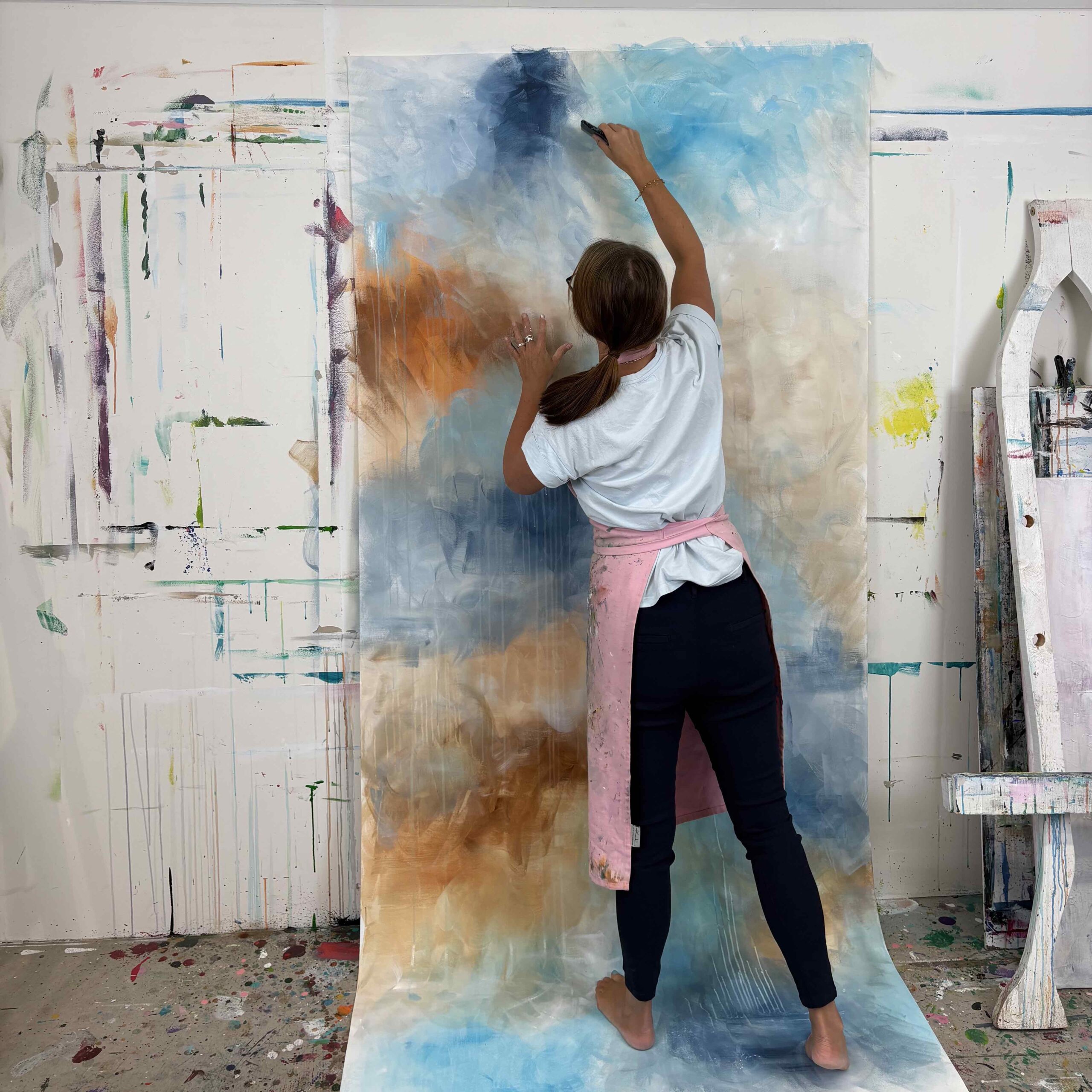 ”Wowkänsla, jag kommer att bo i ateljén. Vill bara måla, måla, måla, tack! Alltså tack för att jag verkligen satte igång igen. 4 målningar påbörjade.”