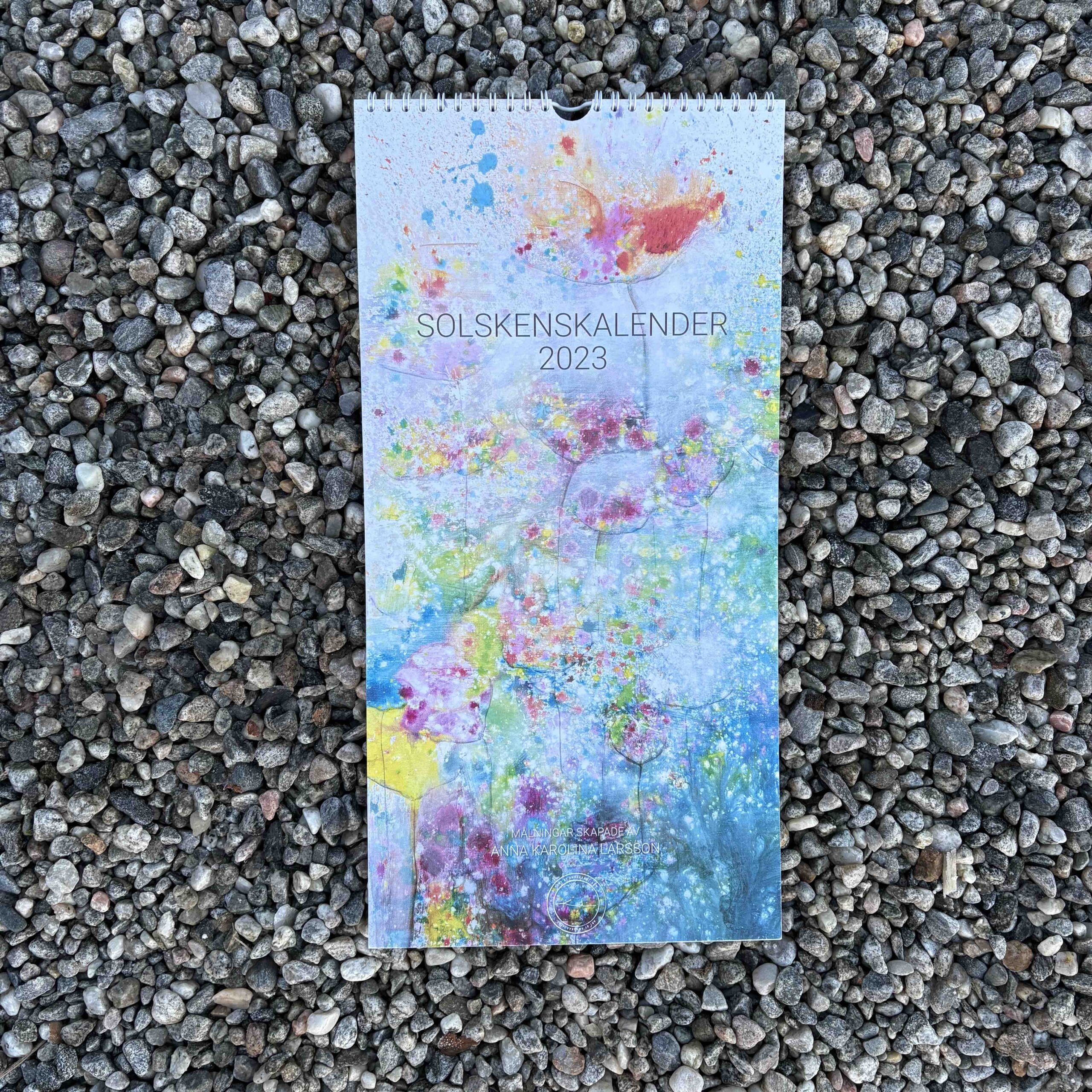 En solskenskalender från år 2023 som är den fjärde i serien. För dig som vill samla på varje års upplagor. De 12 olika månaderna är förgyllda med målningar skapade av mig som jag hoppas ska fylla dig med solsken.