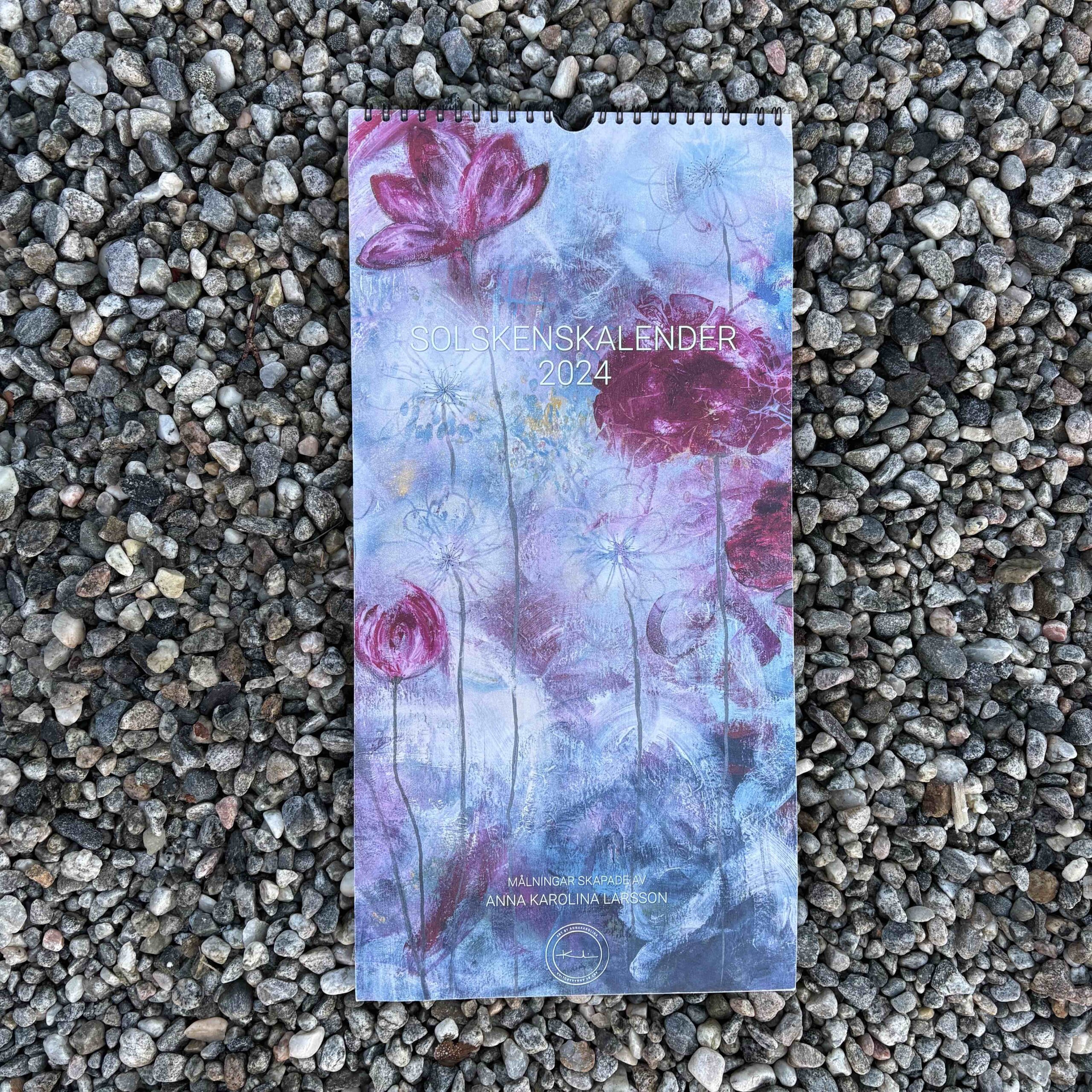 En solskenskalender från år 2024 som är den femte i serien. För dig som vill samla på varje års upplagor. De 12 olika månaderna är förgyllda med målningar skapade av mig som jag hoppas ska fylla dig med solsken.