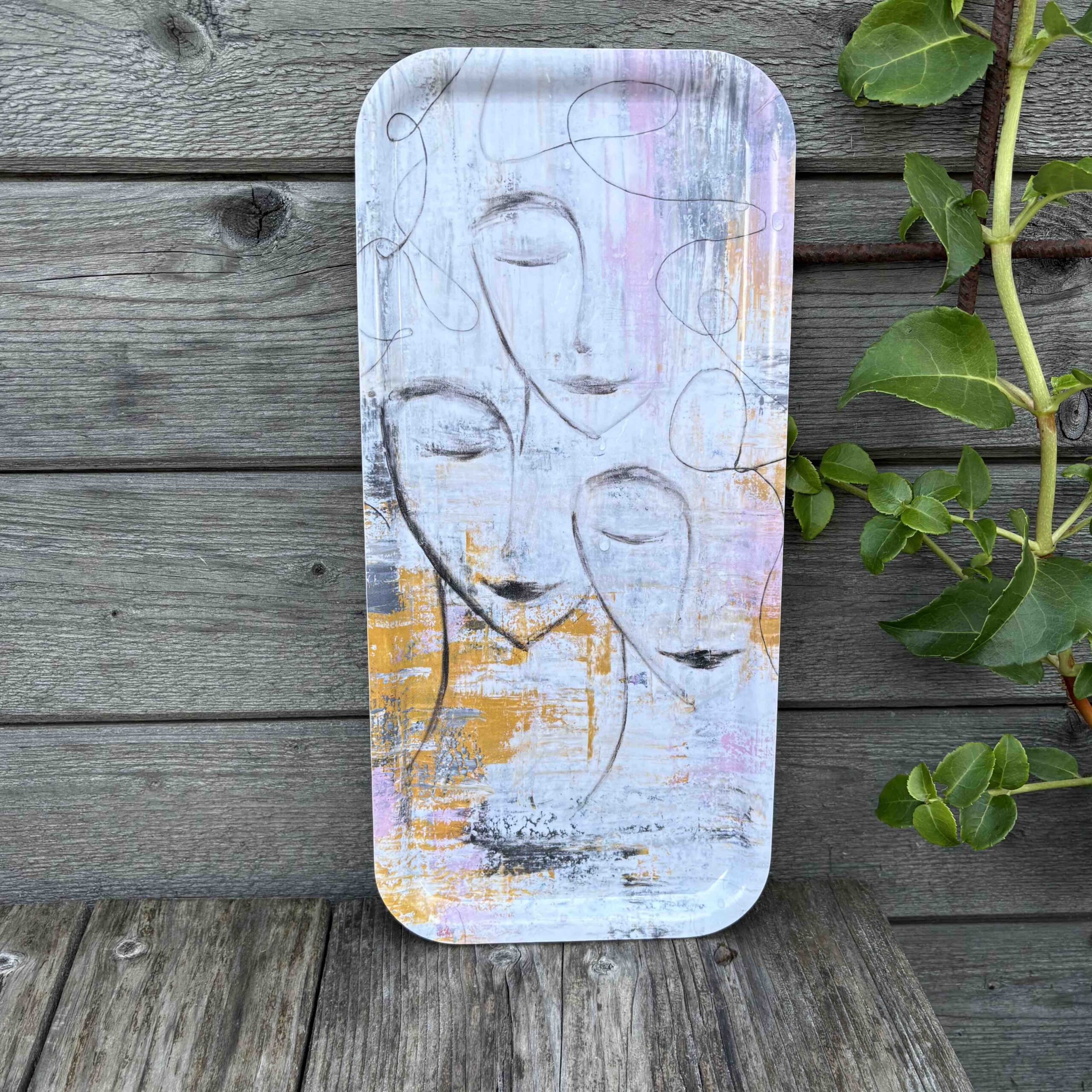 Rektangulär bricka i storlek 32 x 15cm, med motiv från originalmålningen ”Soulsisters”. Svensktillverkad i björkfanér.