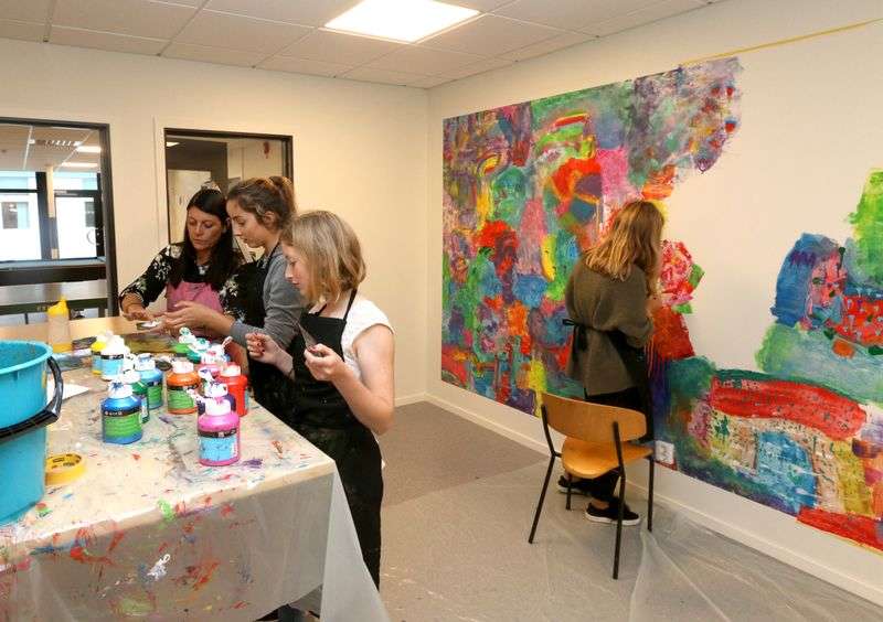 Jag kan varmt rekommomendera ett ”tillsammansprojekt” som kan bidra till ökad känsla av gemenskap och delaktighet. På en skola i Bollebygds kommun och även i Alingsås kommun förvandlades intetsägande, vita, tråkiga väggar till färgsprakande levande vägg, där eleverna fick vara med och skapa abstrakt konst på sitt sätt. Fantastiska projekt som var mycket uppskattade både av elever och pedagoger. Men mest av allt eleverna såklart som tyckte det var väldigt roligt och lite galet att få måla på skolans vägg. Min långa erfarenhet av att måla med barn samt undervisa är en värdefull tillgång och en stor fördel när jag är ute på projekt i skolorna.