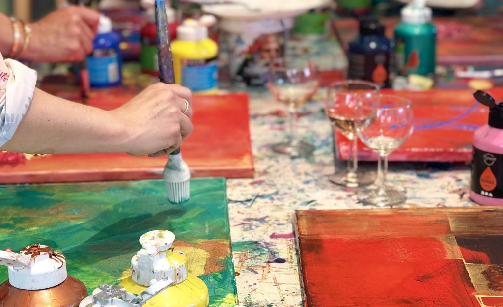 Teambuilding för ditt företag, ett sätt att verkligen kicka igång kreativiteten och göra något annorlunda. Ett spännande nyfiket sätt att med hjälp av färgerna tänja på gränserna och gå ur trygghetszonen, de vanliga rollerna försvinner och alla är på samma nivå. Vilket skapar nytänk, gemenskap och mod, dessutom en rejäl glädjeboost som påverkar välmåendet. Så bjud med personalen på en superhärlig happening där ni får experimentera och utforska färgernas värld utan en massa krav och prestation. Vill ni går det givetvis att göra det än festligare med lite bubbel och tilltugg – skåla, måla och släpp loss kreativiteten.